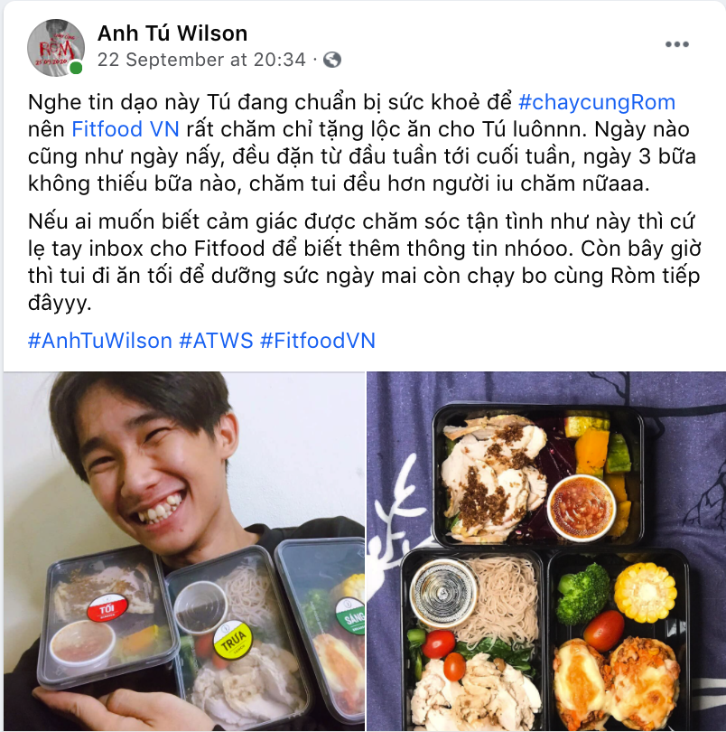 "Chạy cùng Ròm" sau khi bộ phim ra mắt, Fitfood hân hạnh hợp tác với diễn viên Anh Tú Wilson (vai Phúc) trong thời gian sắp tới.